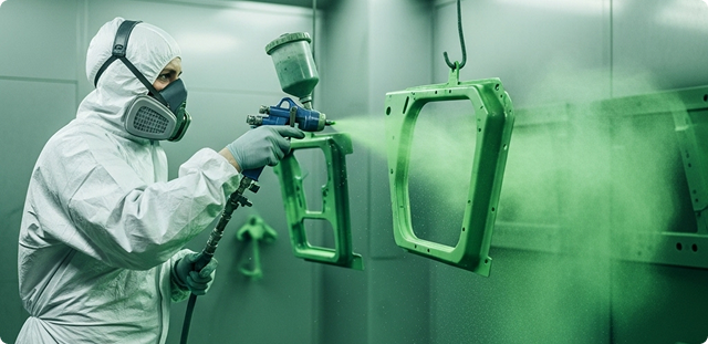 Recubrimientos de bajo contenido en COV (Compuestos Orgánicos Volátiles), prácticas de recuperación responsables y un equipo capacitado para mantener un entorno limpio, organizado y seguro.